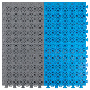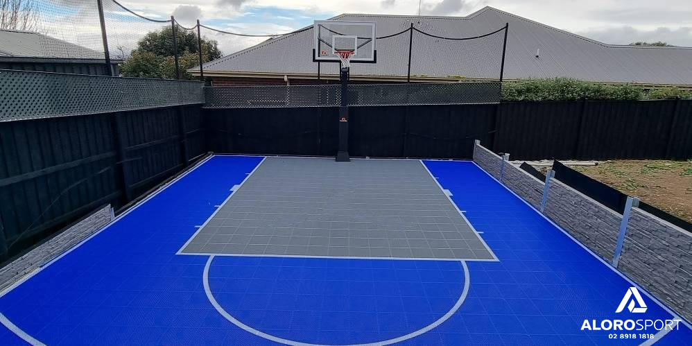 A ready-to-install modular court surface for multi-sport play. The Advantage model in Blue-Grey features anti-slip tiles and shock absorption for safe backyard games and training. Ideal for compact home courts.